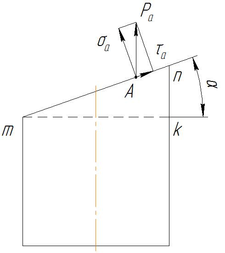 Разложим напряжение ра на составляющие: касательные напряжения τа, лежащие в плоскости mn и нормальные σа, перпендикулярные плоскости mn. Тогда: