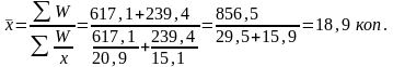 Расчет показателя средней стоимости валового регионального продукта в среднем на 1 руб. стоимости основных фондов в экономике проводим по средней гармонической взвешенной, так как неизвестен показатель стоимости основных фондов в экономике, находящийся в знаменателе. Весом выступает численность населения занятого в экономике.