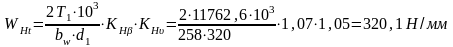 Расчетная величина удельной окружной нагрузки