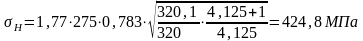 Определяем действительное контактное напряжение по формуле (2.5)