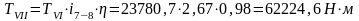 PVII=PVI ∙ η = 25,41 ∙ 0,98 = 24,9 кВт.