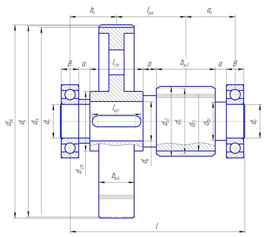 Проектный расчет вала делаем для промежуточного вала IV (рис. 1).