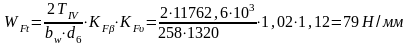 Для шестерни 5 Z5 = 16, YF1 = 4,25; для колеса Z6 = 66, YF2 = 3,18.
