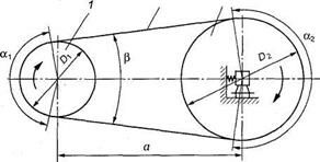 , соответствующие дугам, по которым происходит касание ремня и обода шкива, называют углами обхвата. Перечисленные геометрические параметры являются общими для всех типов ременных передач.