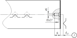 | 2. Подрезать (чистовое точение) поверхность 3, сняв припуск в размер А0,3. 3. Сверлить центровочное отверстие по чертежу. |