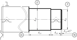 | 3. Точить (получистовое) поверхность 9 в размер А1,6, выдерживая размер А1,5. 4. Точить (получистовое) поверхность 10 в размер А1,7, выдерживая размер А1,8. |