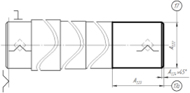 | 13. Точить (чистовое) поверхность 17 в размер А1,22, выдерживая размер А1,23. 14. Снять фаску в размер А1,24х450. | |