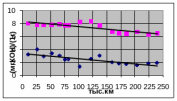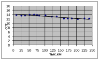На рис. 3 — 6 показаны изменения параметров масла на секции с АСФ в зависимости от пробега тепловоза. Обращает на себя внимание то, что ни один из показателей при пробеге локомотива до 250 тыс. км не достиг своего предельного браковочного значения, при котором необходима замена картерного масла. Если при штатной системе фильтрации технические условия на поставку дизеля предписывают замену масла через каждые 100 тыс. км пробега, то, как показали испытания, в случае применения АСФ масло пригодно к дальнейшей эксплуатации даже при пробеге до 250 тыс. км