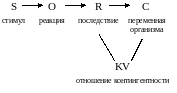 S — стимульные условия, O — переменная организма, R — реакции, KV — отношение контингентности, или план подкрепления (отношение между реакцией и последствием), и C — последствия.