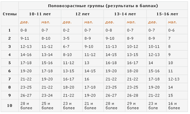 Первичная оценка переводится в шкальную. В качестве шкальной оценки используется стандартная десятка. Для этого данные испытуемого сопоставляются с нормативными показателями группы учащихся соответствующего возраста и пола. Результат, полученный по всей шкале, интерпретируется как показатель общего уровня тревожности, по отдельным субшкалам - отдельных видов тревожности.