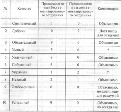 Итак, вы установили качества, по которым различаются наиболее мотивированные и наименее мотивированные сотрудники. Вопросы для размышления и обсуждения: