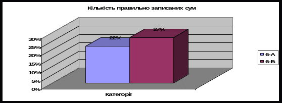 Кількість правильно записаних сум у експериментальній групі – 22% (середнє значення в класі).