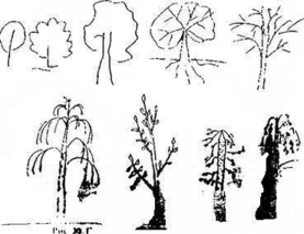 При анализе значительного количества рисунков, выполненных лицами различного пола и возраста (авторами проанализированы более 2000 рисунков, возраст испытуемых от 7 до 60 лет), удалось выделить несколько устойчивых типов рисования дерева, а также определить ряд конкретных деталей, использование которых в изображении дерева свидетельствует о некоторых индивидуальных различиях людей.