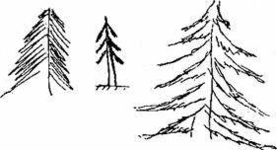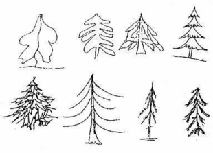 Тип 1 - "ель". Изображение ели весьма разнообразно: от схематически представленной до детализированной, со множеством веток и вырисованных иголок. Для лиц, выполняющих рисунок ели, наиболее часто характерна склонность к доминированию, организаторские способности, активность.