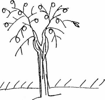 2.Наличие яблок на голых ветках, на которых виден лишь один листок. Наличие яблок (по Коху) означает чувство вины, по нашим наблюдениям - стремление к результативности в деятельности. Голые ветки часто характерны для лиц, обладающих детской непосредственностью, оживленностью, отличающихся умением смотреть на мир "свежим взглядом".