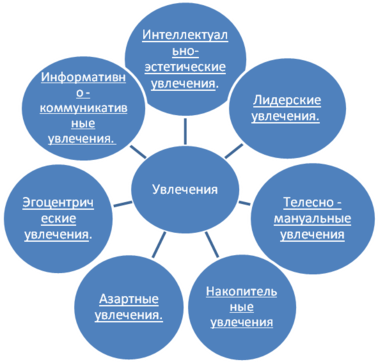 Увлечения у подростков составляют категорию психических феноменов, структурных компонентов личности, располагаясь где-то между инстинктами и влечениями, с одной стороны, и наклонностями и интересами – с другой. В отличие от влечений, хобби не имеют непосредственной связи с инстинктами, со сферой безусловных рефлексов. В отличие же от интересов и наклонностей, увлечения всегда более эмоционально окрашены, хотя и не составляют главную трудовую направленность личности, не являются профессиональной деятельностью.