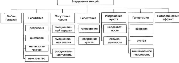Эмоций нарушения — особый класс нарушений психики, связанный с трудностями восприятия и выражения эмоций. Симптомы эмоциональных нарушений многочисленны и разнообразны. Они имеют большое диагностическое значение при определении патологии собственно эмоциональной сферы, а также при определении степени выраженности психопатологических синдромов. Среди симптомов нарушений эмоций обычно выделяют нарушения эмоционального реагирования (острые и неадекватные по интенсивности эмоциональные реакции на различные внешние события и ситуации) и симптомы расстройств настроения.