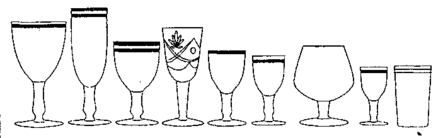 При сервировке банкетного стола стеклянная и хрустальная посуда используется в ресторане в следующем ассортименте
