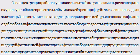 Задача испытуемой: отыскать и выписать из предложенного ничего не значащего текста слова. Время ограничено до 2-х минут.
