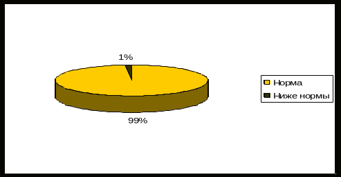 Из диаграммы видно, что почти у всех школьников (99%) объем образной кратковременной памяти в норме, что подтверждает литературные данные.