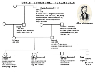 Складання родоводу починають з людини, яка була обстежена першою, його називають пробандом. Родовід повинен містити короткі відомості про кожного члена сім'ї із зазначенням його спорідненості по відношенню до пробанда. Представляють родовід графічно, використовуючи стандартні позначення (коло – для жінок; квадрат – для чоловіків). Покоління вказують римськими цифрами зверху вниз і ставлять їх зліва від родоводу. Арабськими цифрами позначають індивідів одного покоління послідовно зліва направо, при цьому брати і сестри або сібси, як їх називають у генетиці, розташовуються в порядку дати їх народження. Всі члени родоводу одного покоління розташовуються строго в один ряд і мають свій шифр (приклад родовід С.В.Ковалевської).