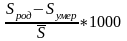 Кобщ. = Крожд – Ксм +Кмех. пр. Кобщ. = 19,1 ‰ – 8,42 ‰ + 0 = 10,68 ‰