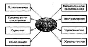 1.Познавательная функция, имеющая своей целью и содержанием изучение общества и понимание его структуры, особенностей взаимодействия в обществе различных индивидов и их групп. Она позволяет ответить на вопрос: «Каково общество, в котором мы живем?»