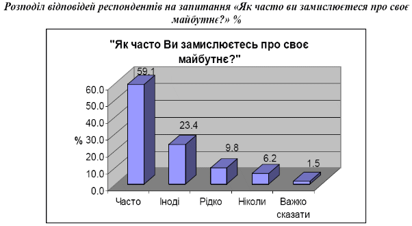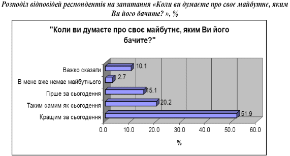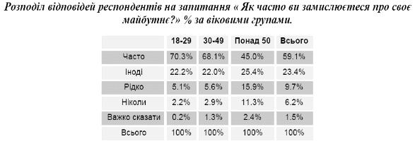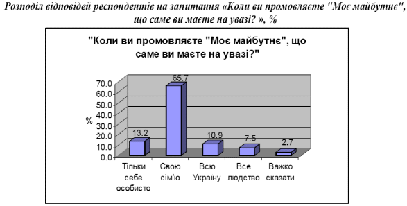 Населення України багато думає про власне майбутнє, при цьому найчастіше не відділяючи його від майбутнього власної сім’ї. Тобто проблематика майбутнього є актуалізованою серед населення.