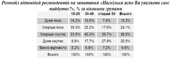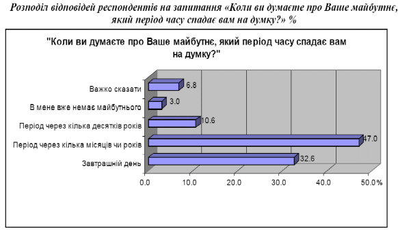 Населення України здебільшого не заглядає у своїх роздумах про майбутнє далеко наперед. І думають або про найближче майбутнє, або на кілька місяців/років наперед.