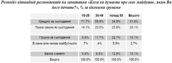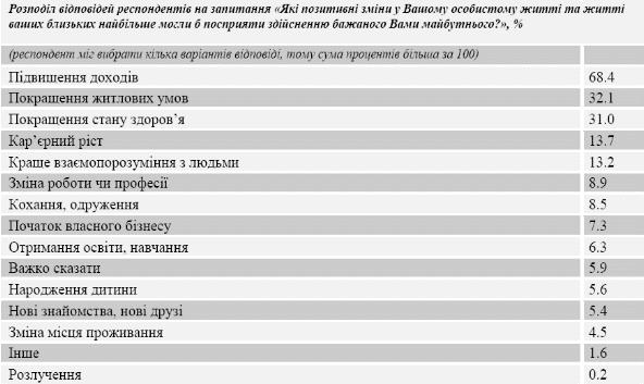Визначення основних характерних особливостей і тенденцій в баченні мешканцями України свого майбутнього.