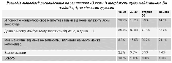 Серед молоді частіше, ніж серед людей старшого віку зустрічається відчуття цілковитого контролю над власним життям. Старші люди частіше почуваються так, ніби їхнє майбутнє від них не залежить.