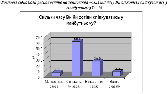 • При цьому в майбутньому більшість населення України хотіла б, щоб кількість спілкування в їхньому житті залишилась незмінною, або збільшилась.