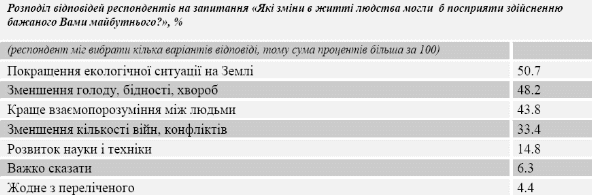 • Мешканці України тісно пов’язують глобальні зміни в житті людства із здійсненням бажаного ними майбутнього.