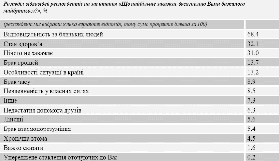 • На особистому рівні життя людям часто заважає у досягненні бажаного майбутнього відповідальність за близьких людей (68.4%)