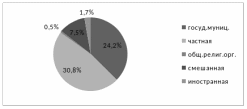 Если рассмотреть численность занятых в экономике России по формам собственности, то можно выделить несколько групп (показатели 2001 года):
