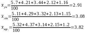 | Професія | “Вага” категорії | Кіль-кість опи-таних | Середня арифметик-на величина | |||||