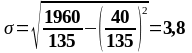 | ∑ = 100 | n = 135 | ∑Vp=2740 | ∑dp=40 | ∑d2p=1960 |
