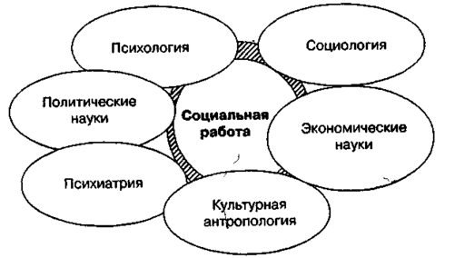 Таким образом, социология, психология, право, социальная политика, социальная философия, социальная антропология и социальная педагогика в ходе становления теории и практики социальной работы входили составной частью в ее теоретические концепты и практические модели, тем самым определив ее как интегративную область познания.