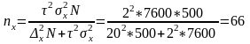 Объем выборки для расчета ошибки средней при N=500, n=50,