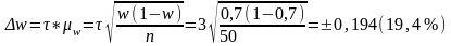 Предельная ошибка доли с вероятностью 0,997 (гарантийный коэффициент =3) при бесповторном отборе:
