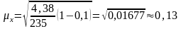 В нашем случае n / N = 0,1, т.к проводилось обследование 10% изделий.