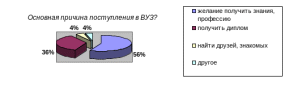 На вопрос, "какая основная причина поступления в вуз", студенты ответили так: