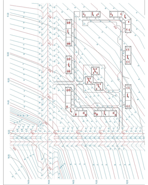 Проектирование вертикальной планировки микрорайонов и кварталов осуществляется методом проектных красных горизонталей.