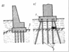 Свайний фундамент складається з трьох основних частин: (див. рис. 1.2.1) ростверка 1, сваї 2, і грунта 3. Ростверк опирається декілька свай, з'єднує їх і розподіляє на них навантаження. Розрізняють два типа свайних фундаментів: з низьким ростверком (рис1.2а), коли він заглиблюється в грунт до 0,5 своєї висоти, і з високим ростверком (рис1.2б), розміщеним вище рівня грунту.