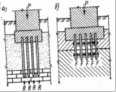 Сваї-стійки (рис 1. а) передають основне навантаження (більше 70…80%) торцьової поверхні сваї. Ці сваї забивають до прочних грунтів. Висячі сваї (рис 1. б) основне навантаження (до 70…80%) сприймають через сили бокового тертя між зовнішньою поверхнею сваї і грунтом.