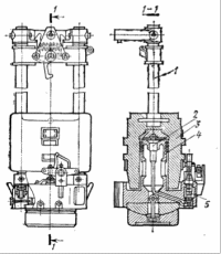 Штангові дизель-молоти (мал.1.2.1). Штанговий дизель-молот працює по слідуючому принципу. На поршень 4, по осі якого є отвори для подачі палива, скидається циліндр 3 значної маси, в результаті повітря в циліндрі стискається. В цей час через форсунку 2 поршня в циліндр вприскується паливо, котре загорається під дією температури стисненого повітря.
