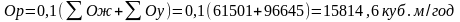 Ор – годовое накопление бытовых отходов от районного обслуживания, т.е. от приезжего населения.