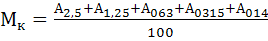 Где А2,5; А1,25; А063; А0315; А014 – полные остатки на сите с круглыми отверстиями d 2.5мм. и на ситах с сетками № 1,25; 063; 0315; 014.