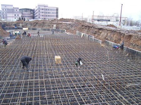 Плитные фундаменты сооружаются под всю площадь здания в виде либо монолитной плиты, либо железобетонной решетки. Такой фундамент целесообразен для строительства небольших компактных сооружений, не требующих высокого цоколя, например, гаражи, бани, мастерские. Для возведения более массивных зданий прибегают к использованию ребристых плит или армированных перекрестных лент.