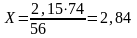 Т.е. из 56 весовых частей СаО получается 74 весовых частей извести пушонки. Отсюда пропорция: